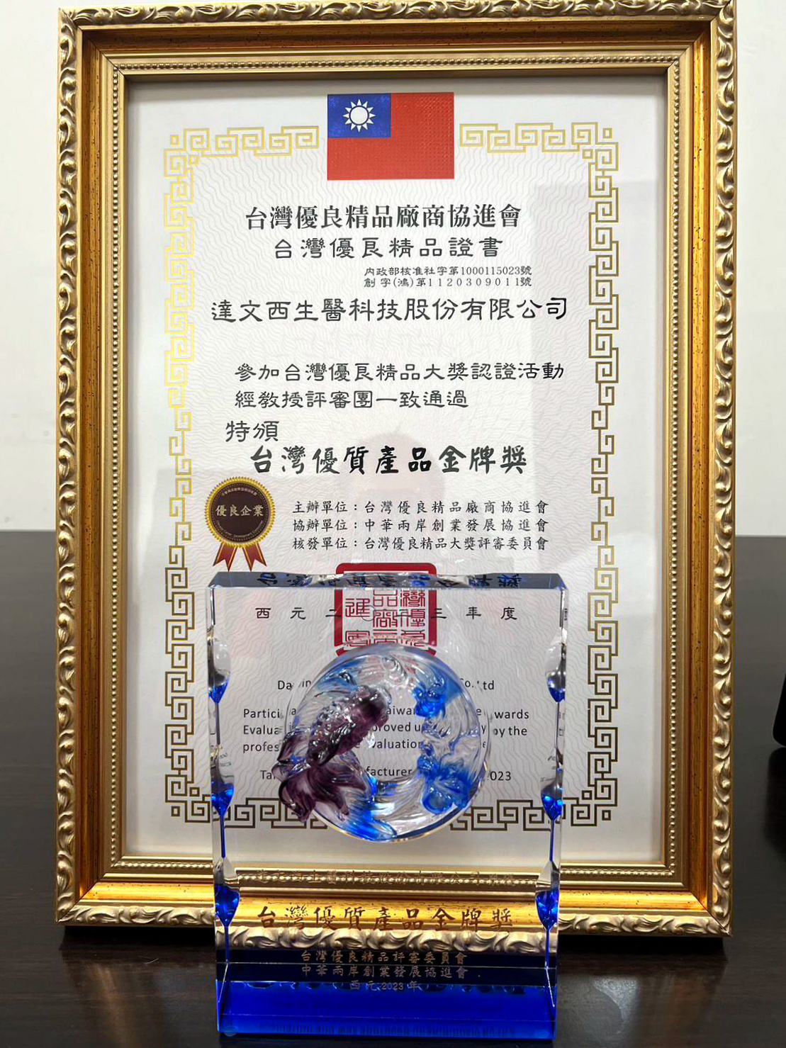 本公司參加台灣優良精品大獎認證活動,榮獲台灣優質產品金牌獎